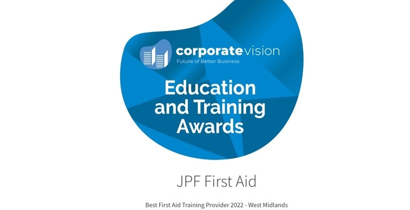 It has recently been announced that JPF First Aid has won ‘Best First Aid Training Provider 2022 – West Midlands’ in the Education and Training Awards provided by Corporate Vision.